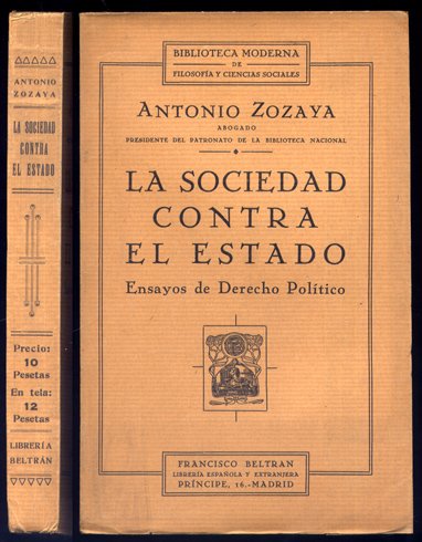 Madrid, Francisco Beltrán Editor, 1931. 4to.; 302 pp., 1 h. Cubiertas originales. El libro que Zozaya, en un entrevista realizada en Barcelona, en 1938, declaraba que era la obra de la que se sentía más satisfecho, a la vez que aventuraba que "la guerra española es el prólogo de la conflagración universal que tarde o temprano estallará". Murió en México, en 1943, durante esa conflagración.