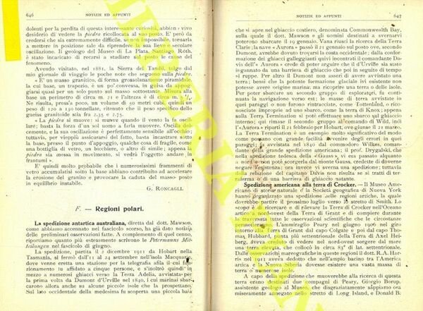 Roma, Società Geografica Italiana, 1912, 8vo stralcio con copertina posticcia muta, pp. 646/648. - ! ATTENZIONE !: Con il termine estratto (o stralcio) intendiamo riferirci ad un fascicolo contenente un articolo, completo in se, sia che esso sia stato stampato a parte utilizzando la stessa composizione sia che provenga direttamente da una rivista. Le pagine sono indicate come "da/a", ad esempio: 229/231 significa che il testo è composto da tre pagine. Quando la rivista di provenienza non viene indicata é perché ci è sconosciuta. - ! ATTENTION !: : NOT A BOOK : “extract” or “excerpt” means simply a few pages, original nonetheless, printed in a magazine. Pages are indicated as in "from” “to", for example: 229/231 means the text comprises three pages (229, 230 and 231). If the magazine that contained the pages is not mentioned, it is because it is unknown to us.