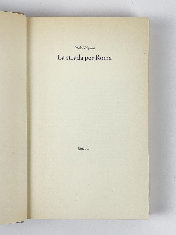 LIBROPrima edizione.Ottimo esemplare (traccia di sporco al piatto posteriore della sovracoperta, traccia d’urto al piatto anteriore della sovracoperta e della brossura).«A partire dall’estate del 1962 [Volponi] lavorò a “Repubblica borghese”, romanzo di formazione, interrompendolo nel 1964 (lo riprese pubblicandolo solo diversi anni più tardi con il titolo “La strada per Roma”) per iniziare “La macchina mondiale”. [.] Nel 1991 Volponi pubblicò il romanzo “La strada per Roma”, con cui tornò a Urbino, ricordando i difficili anni della sua giovinezza, dopo la fine della guerra: il romanzo venne insignito con il premio Strega, e Volponi fu il primo scrittore a conseguirlo per due volte, ventisei anni dopo averlo vinto, nel 1965, con “La macchina mondiale”» (Salvatore Ritrovato, «Volponi», voce del «Dizionario biografico degli Italiani», volume 100, 2020).