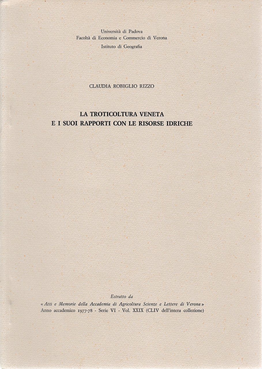 La troticoltura veneta e i suoi rapporti con le risorse idriche. Estratto anno accademico 1977-78