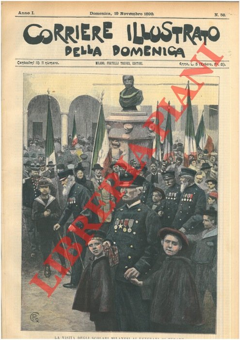 Milano, 1899, novembre 19, copertina illustrata a colori in fascicolo originale completo di pp. 8 de "Corriere Illustrato della Domenica" .