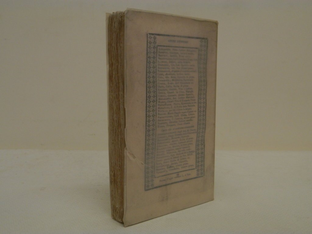 16°, mm 170x105, pp. 254, brossura editoriale, titoli a stampa in cornice ornata incisa, velina protettiva, eccellente esemplare, ex libris applicato al contropiatto. Ritratto di Galileo dipinto da Giusto Suttermans e inciso da Marco Comirato (Venezia c.1800-1869), contiene le principali notizie sulla vita dell' autore appositamente scritte (1654) per il Granduca Leopoldo dal fisico fiorentino Vincenzo Viviani, curatore delle sue opere, ed una interessante scelta di lettere scientifiche ed alcune private di Galilei, fra cui quelle relativa alla sua difesa per l' abiura; fa parte della raffinata Collezione curata da Bartolomeo Gamba Operette di instruzione e di piacere scritte in prosa da celebri italiani antichi e moderni.. *** TUTTI I NOSTRI LIBRI SONO VISIBILI PREVIO CONTATTO MAIL O TELEFONO NELLA NUOVA SEDE DI MILANO: LIBRERIA COSMOPOLIS, VIA JOMMELLI, 22. ***