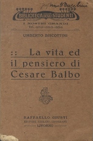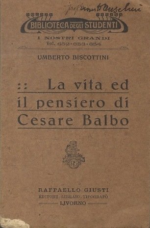 La vita ed il pensiero di Cesare Balbo. | Rare and modern books | Biscottini, Umberto.