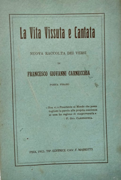 La vita vissuta e cantanta. Nuova raccolta dei versi di Francesco Giovanni Carnecchia, poeta pisano.