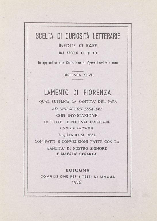 Lamento di Fiorenza | Rare and modern books |
