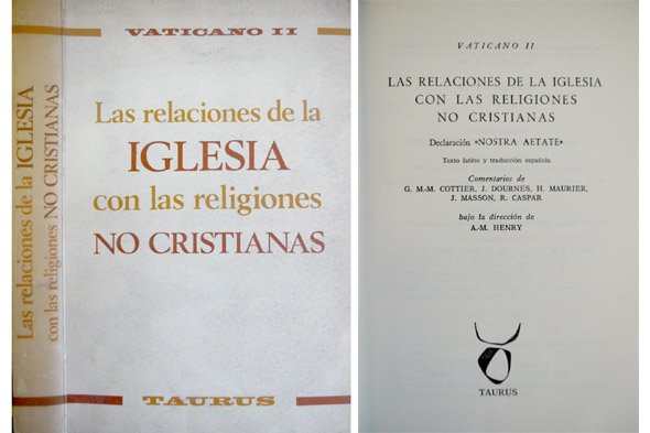 Las relaciones de la Iglesia con las religiones no cristianas. Declaración "Nostra Aetate". Texto latino y traducción española. Comentarios de G.M.M. Cottier, J. Dournes, H. Maurier, J. Masson, R. Gaspar, bajo la dirección de A. M. Henry. Traducción de Francisco Pérez. Presentación de Jesús Aguirre y Prólogo de A. M. Henry.