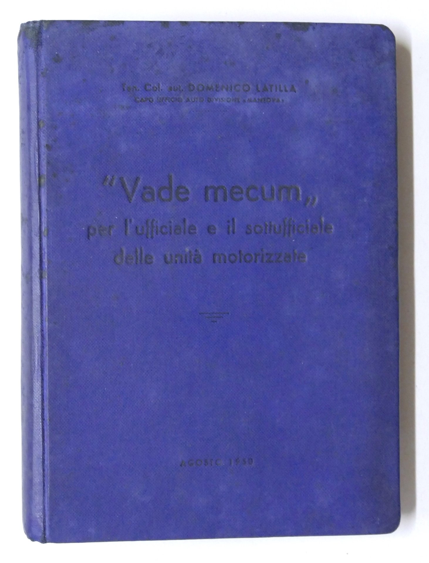Col. Domenico Latilla - Vademecum per l'ufficiale e il sottufficiale delle unità motorizzate - 1950 Pag. XV, 430. Copertina rigida - Testo in italiano. Condizioni molto buone. Copertina come da foto.