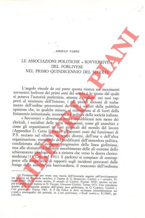 Le associazioni politiche “sovversive” del Forlivese nel primo quindicennio del secolo.