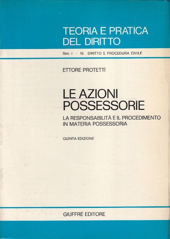 volume in buone condizioni, segni di usura causati dal fattore tempo sulla copertina, interno in ottimo stato, legatura salda, sez. 1 vol. 16 di "Teoria e pratica del diritto"