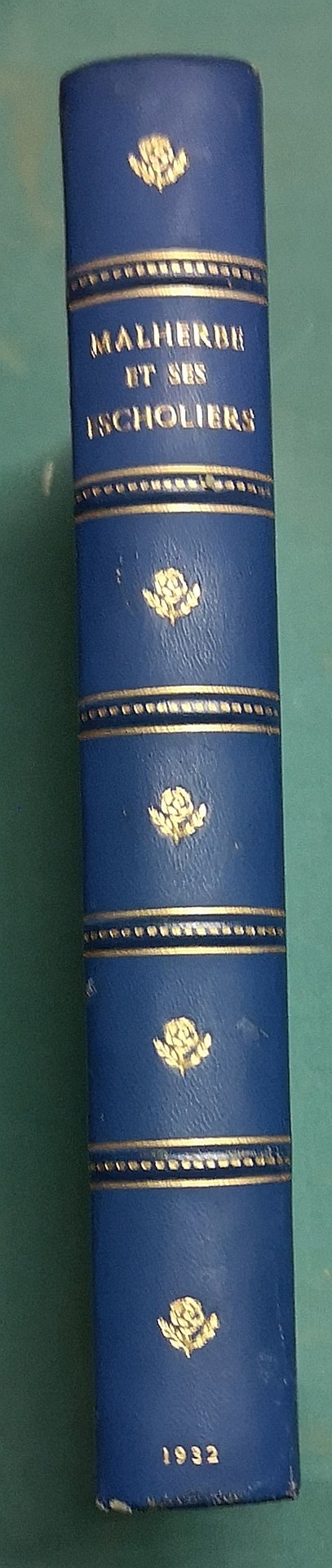 >in-8 broché, pp. 246, bell'antiporta inciso. Bella legatura d'amatore in m. pelle azzurra, titolo e fregi in oro su dorso a nervi, broch. edit. conservata. Edizione di 2615 esemplari numerati (n. 1513) su carta forte di questa "Recueil de poésies libres, rares ou peu connues, pour servir de Supplément aux Oeuvres dites complètes des poètes français François de Malherbe et ses escholiers." Perfetto esemplare.