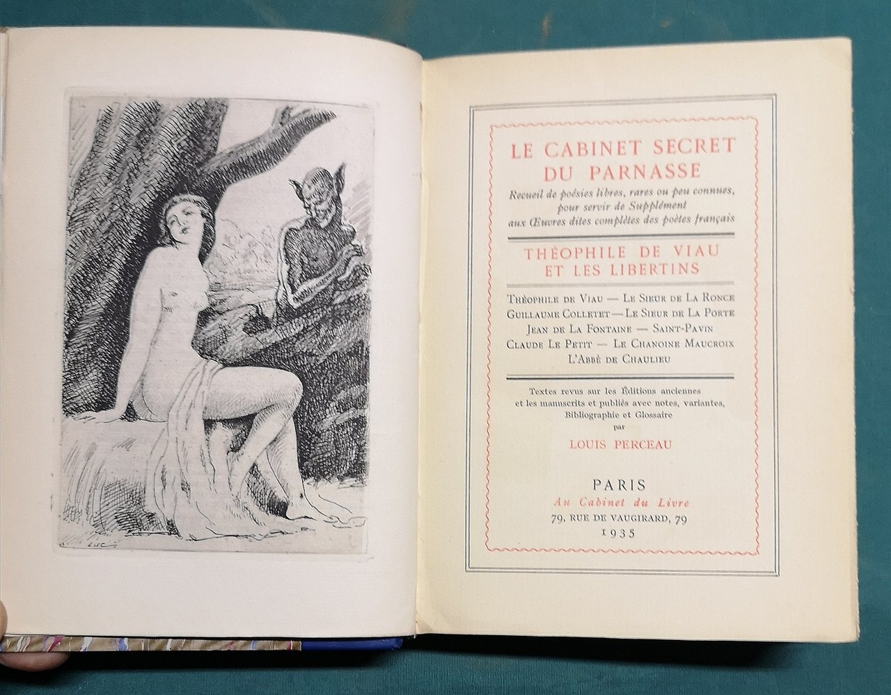 Le Cabinet secret du Parnasse. Théophile de Viau et les Libertins. Théophile de Viau - Le Sieur de La Ronce - Guillaume Colletet - Le Sieur de La Porte - Jean de La Fontaine - Saint-Pavin - Claude La Petit - Le Chanoine Maucroix - L'Abbé de Chaulieu.