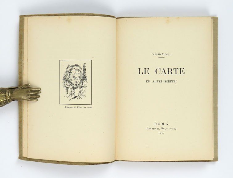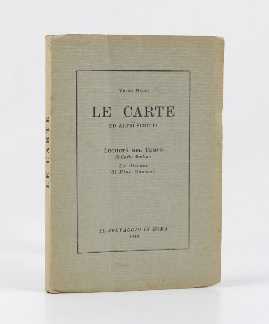 LIBROPrima edizione.Ottimo esemplare.Raccoglie due gruppi di prose liriche ed aforistiche (e qualche poesia). «Le carte» e «Scritti vari» preceduto da un saggio prefatorio di Carlo Mollino. Le dedicatorie di ciascun frammento raccontano del gruppo straordinario di scrittori, intellettuali e artisti dei quali Mucci è stato interlocutore nel corso degli anni ’30: Primo Zeglio, Francesco Menzio, Giacomo Manzù, Filippo De Pisis, Paul Eluard, Italo Cremona, Mino Maccari, Leo Longanesi, Romain Rolland, Augusto Bertinaria, Luigi Spazzapan. Raro.