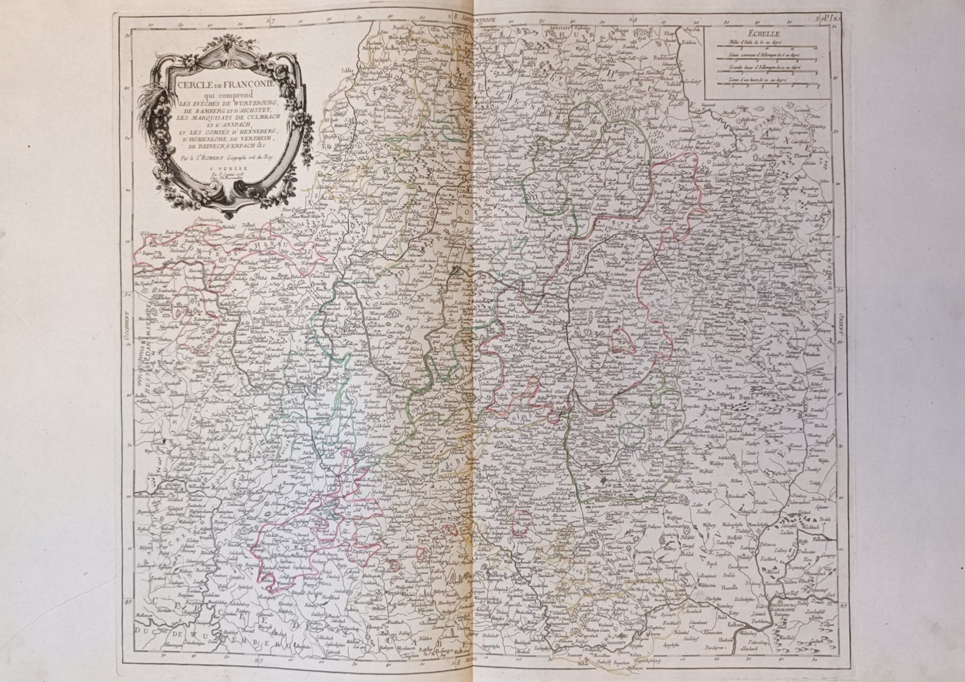 Mappa dall' “Atlas Universel” stampato a Venezia nel 1776 e nel 1784.Il soggetto riprende la precendete carta di R. De Vaugondy, Janvier e altri. acquaforte acquerellata a mano inciso cm. 60,5 x 50 Buono (Good) Buon es..