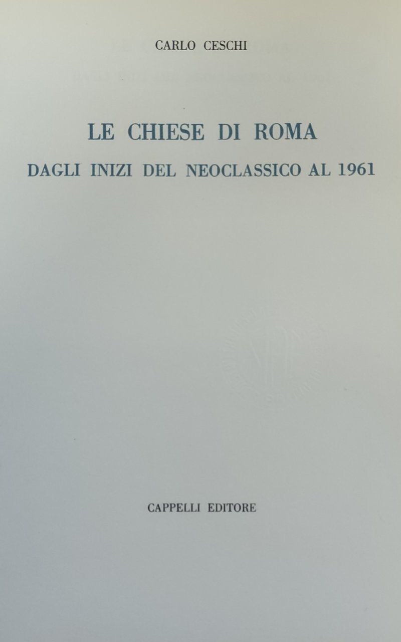 LE CHIESE DI ROMA DAGLI INIZI DEL NEOCLASSICO AL 1961