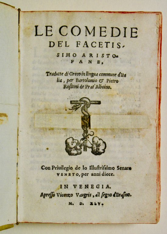 Le Comedie del facetissimo Aristofane. tradutte di greco in lingua d'Italia, per Bartolomio et Pietro Rositini de Prat'Alboino