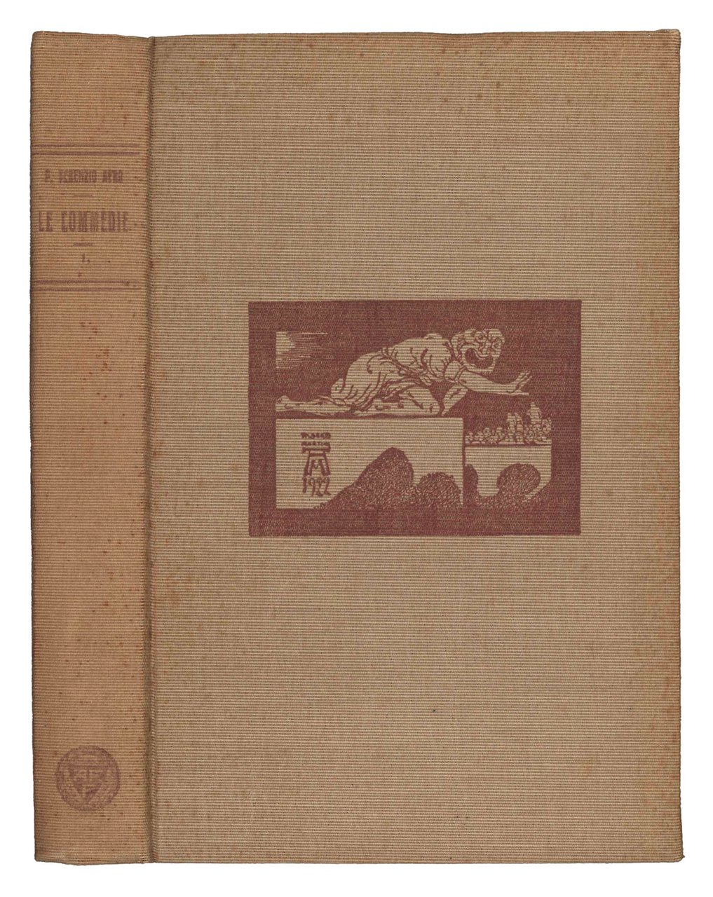Due volumi. Mm. 200x127. Pp. XIII, 272; 248. Con "maschere" xilogr. di Alberto Martini e finalini. Frontespizi entro cornice ornamentale. Esemplari in barbe, a fogli chiusi. Rilegato in tela editoriale con titolo al dorso. Opera appartenente alla collana Classici del ridere, nr. 45 e 47. Al primo volume troviamo le opere: La donna d'Andro, Il punitore di se stesso, L'Eunuco; al secondo volume: Formione, La suocera, I fratelli.