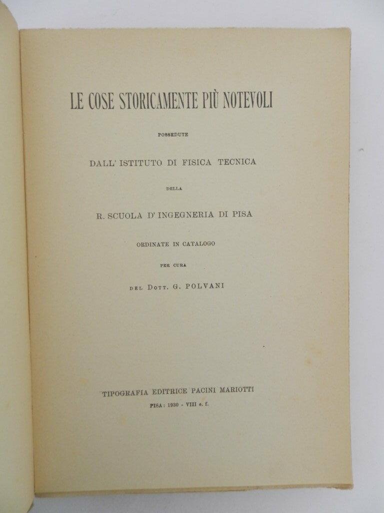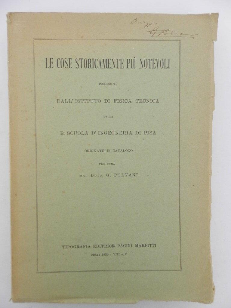 Le cose storicamente piu notevoli possedute dall'Istituto di fisica tecnica della R. Scuola d'ingegneria di Pisa