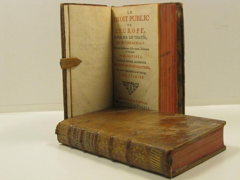 In 16, pp. (4) + 414; (4) + 414. P. pl. coeva con fr. al d. Importante testo di questo anticipatore del comunismo seppure su basi moralistiche. Le droit venne pubblicato nel 1748, questa e' l'edizione successiva, modificata, particolarmente nel 12o capitolo concernente i trattati di commercio e navigazione tra le potenze europee nel quale espone l'idea che la ricchezza derivi non dal possesso di metalli preziosi, che, anzi, genera poverta' per gran parte della popolazione, ma dall'operosita' delle persone. In questa edizione compaiono per la prima volta i commenti del Rousset, in seguito ripuidiati dal Mably stesso.