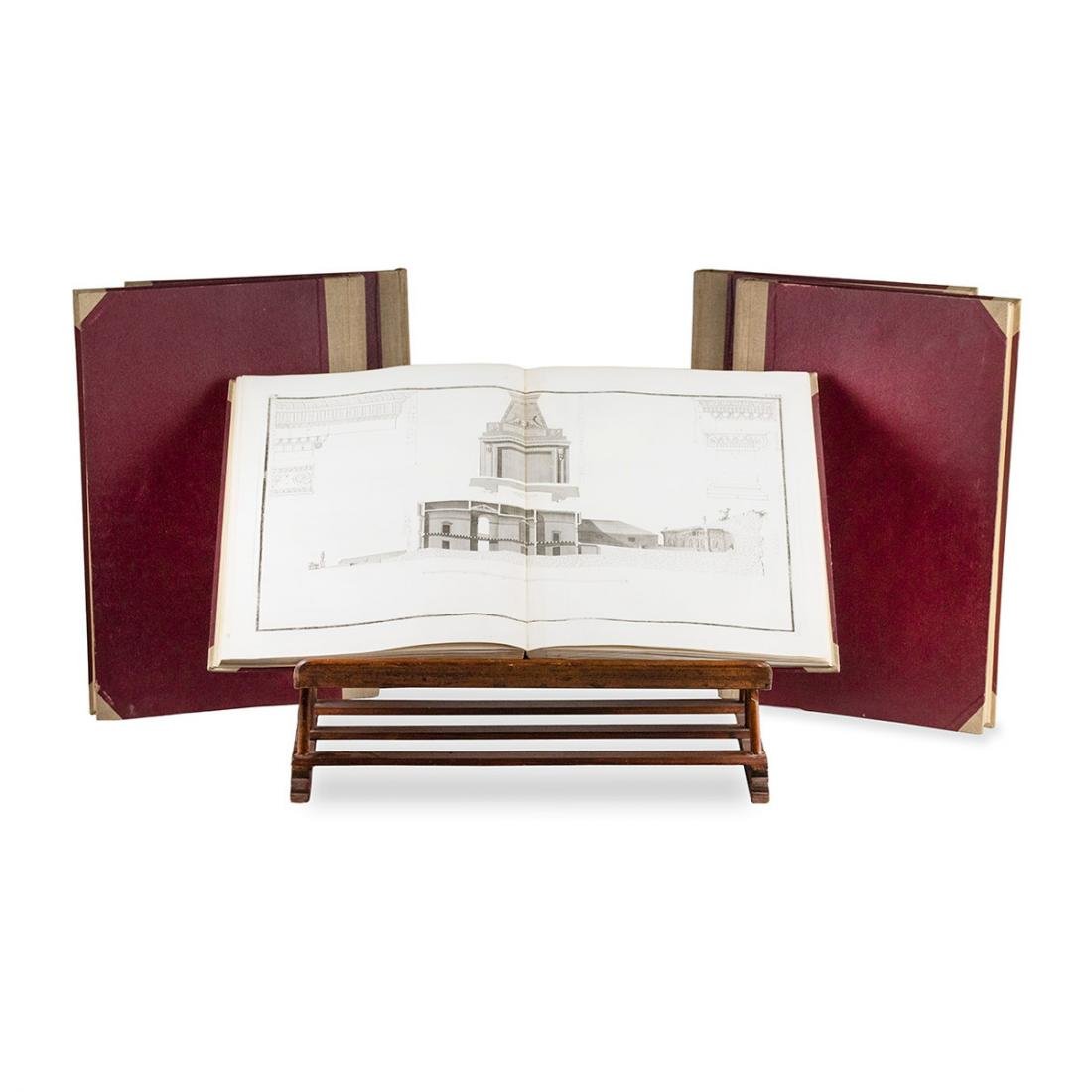 Autore: Andrea Palladio Titolo: Le Fabbriche e i disegni di Andrea Palladio e le Terme Sottotitolo: Nuova edizione italiana foggiata sulla vicentinese di Bertotti Scamozzi ampliata e fornita di note dal Cavaliere Celestino Foppiani, Prof. d'Architettura nella R. Università di Genova. Volumi: Volumi I-IV: Le Fabbriche e i Disegni Volume Unico: Le Terme dei Romani (Nuova edizione italiana fatta sopra la vicentina del 1797 per servire di complemento all'opera "Delle Fabbriche e dei Disegni" data in Torino negli anni 1842-1846) Editore: Giovanni Decamilli - GenovaLibraio Coeditore: Angelo Monti - Milano Stampatore: Tipografia Fontana - Torino, 1842-1846 Dimensioni: 33 x 47 cm (1X) Pagine: Volume I: 135 p. + LII (52) Tavole f.t.Volume II: 88 p. + LI (51) Tavole f.t.Volume III: 72 p. + LII (52) Tavole f.t. Volume IV: 92 p. + LIV (54) Tavole f.t. Volume Unico: 28 p. + XXV (25) Tavole f.t. Copertina rigida - cartonato con dorsi in tessuto. Condizioni: Ottime come da foto - perfetto stato di conservazione generale