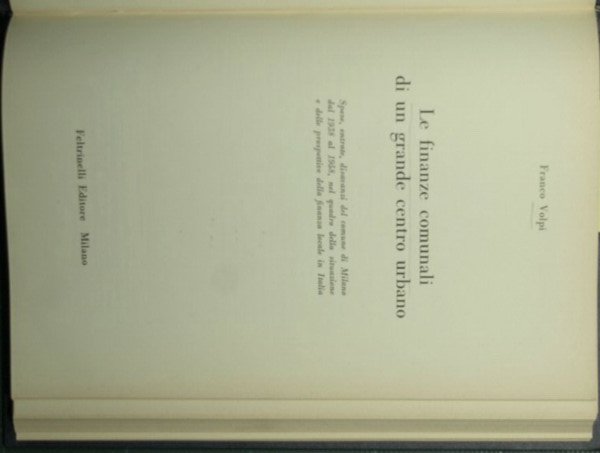 Le finanze comunali di un grande centro urbano | Rare and modern books | Volpi Franco