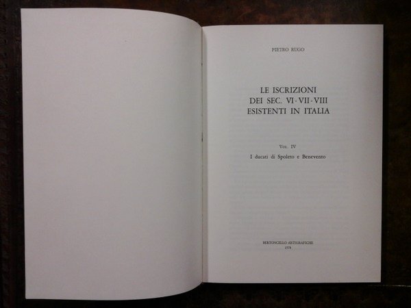 Le iscrizioni dei secoli VI-VII-VIII esistenti in Italia. Vol. IV: I Ducati di Spoleto e Benevento