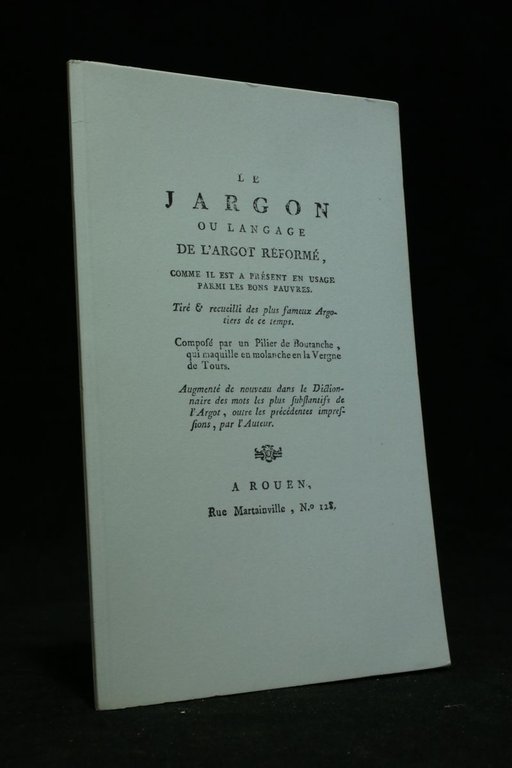 Le jargon ou langage de l'argot réformé comme il est à présent en usage parmi les bons pauvres tiré & recueilli des plus fameux Argotiers de ce temps