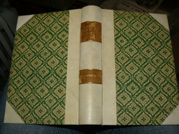 In-8°, pp. (8), 270, (4), legatura mezza pergamena con titolo in oro su doppio tassello in pelle bicroma su dorso, piatti in carta decorata. Conservata la brossura editoriale illustrata con scena di martirio di San Sebastiano.