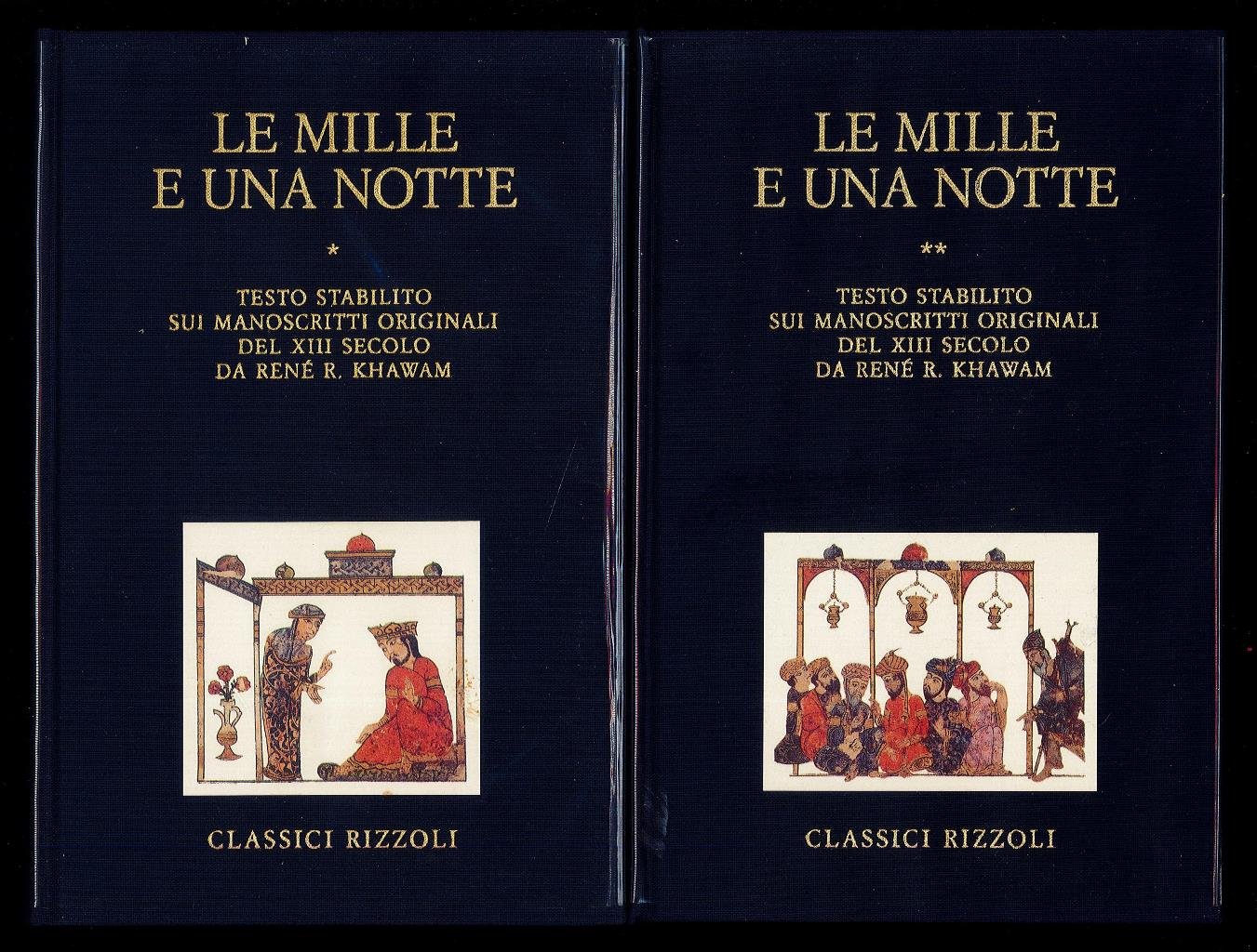 Libri vintage in cofanetto. Prima edizione. Volume I: Illustri dame e galanti servitori - Cuori disumani.Volume II: Passioni vagabonde - Il gusto dei giorni. Testo stabilito sui manoscritti originali da René R. Khawam. Prefazione di Giorgio Manganelli. Sovraccoperte in acetato. Argomento: narrativa. Autore: autori vari. Editore: Rizzoli. Luogo: Milano. Anno: 1989. Formato: in-8°. Pagg: 1530. Legatura: cartonata in tela blu. Conservazione: ottima.