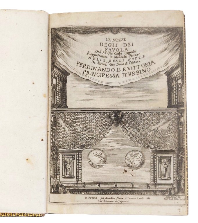 Le Nozze degli Dei. Favola rappresentata in musica in Firenze nelle reali nozze de sereniss. Gran Duchi di Toschana Ferdinando II e Vittoria Principessa d'Urbino. (Segue, con tit.proprio:) RONDINELLI, Franc. Relazione delle Nozze degli Dei. Favola di G.C. Coppola.