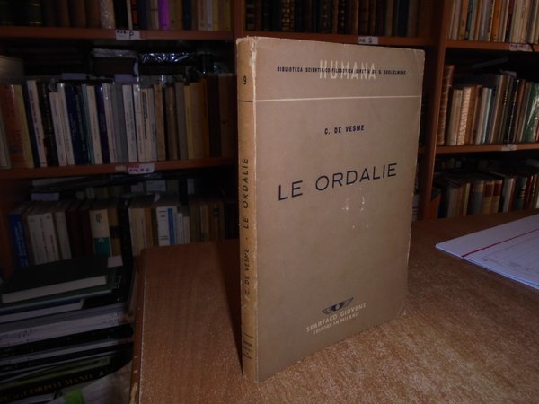 C. DE VESME. Milano, Spartaco Giovene Editore, 1945. LE ORDALIE. In-8°, br. 193 pp. Normali segni del tempo ma ben conservato con firma ex proprietario all' occhietto. Stanz. TV. mob. nostro sotto centro
