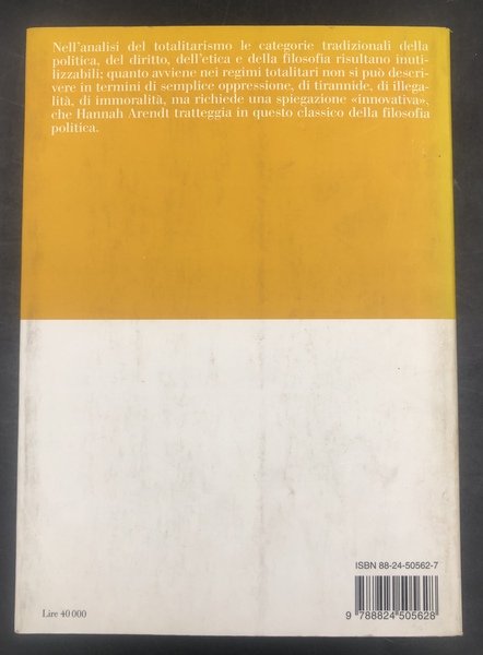 Le ORIGINI del TOTALITARISMO. Traduzione di Amerigo Guadagnin sulla 3:a edizione tedesca del 1966.