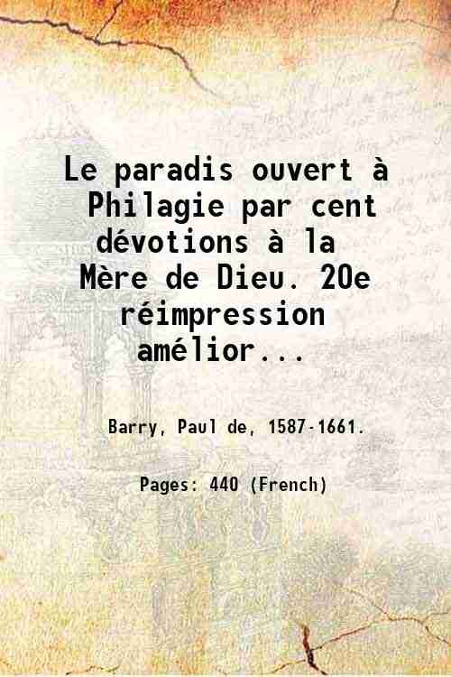 Le paradis ouvert ‡ Philagie par cent dÈvotions ‡ la MËre de Dieu. 20e rÈimpression amÈliorÈe, et prÈcÈdÈe d'une introduction critique par Jean Darche. 1868