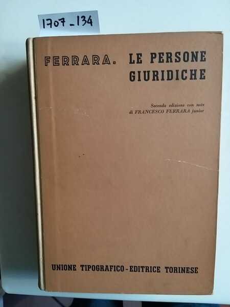 Le persone giuridiche - Trattato di Diritto civile - seconda edizione con note di Francesco Ferrara junior