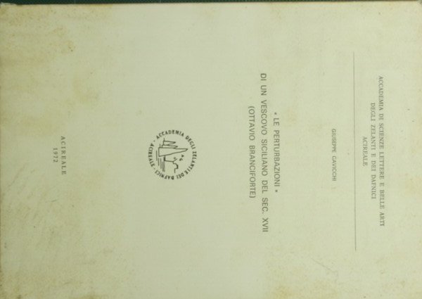 Le perturbazioni di un vescovo siciliano del sec. XVII | Rare and modern books | Cavicchi Giuseppe