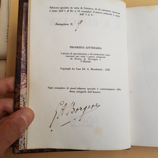 In-8°, pp. 207, legatura in piena pelle con titolo e fregi in oro al dorso. Edizione speciale, su carta Fabriano, di 40 esempalri numerati a mano e firmati dall'autore, il nostro è il n. 9 Gambetti Vezzosi, p.80