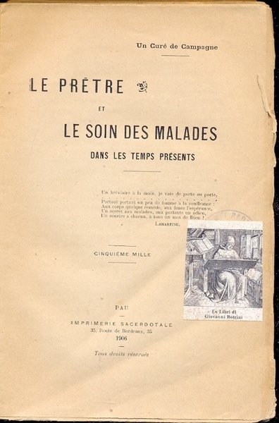 Le Pretre et le soin des malades dans les temps prèsents.