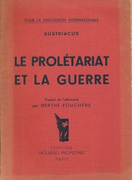 Paris, Editions Nouveau Pométhée 1935 Paris, Editions Nouveau Pométhée, 1935. In-12 broché, 29 pages. Traduit de l'allemand par Berthe Fouchère. Bords de la couverture un peu passés.
