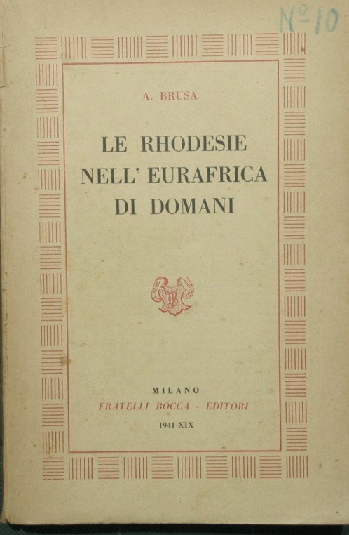 Le Rhodesie nell'Eurafrica di domani | Rare and modern books | Brusa A.