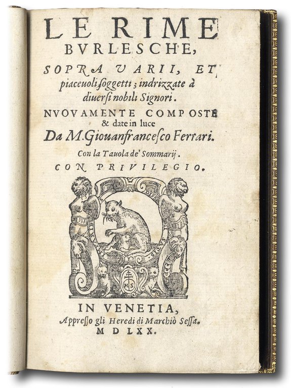 Le rime burlesche, sopra varii, et piaceuoli soggetti; indrizzate à diuersi nobili signori. Nuouamente composte & date in luce da M. Giouanfrancesco Ferrari. Con la tauola de'sommarij