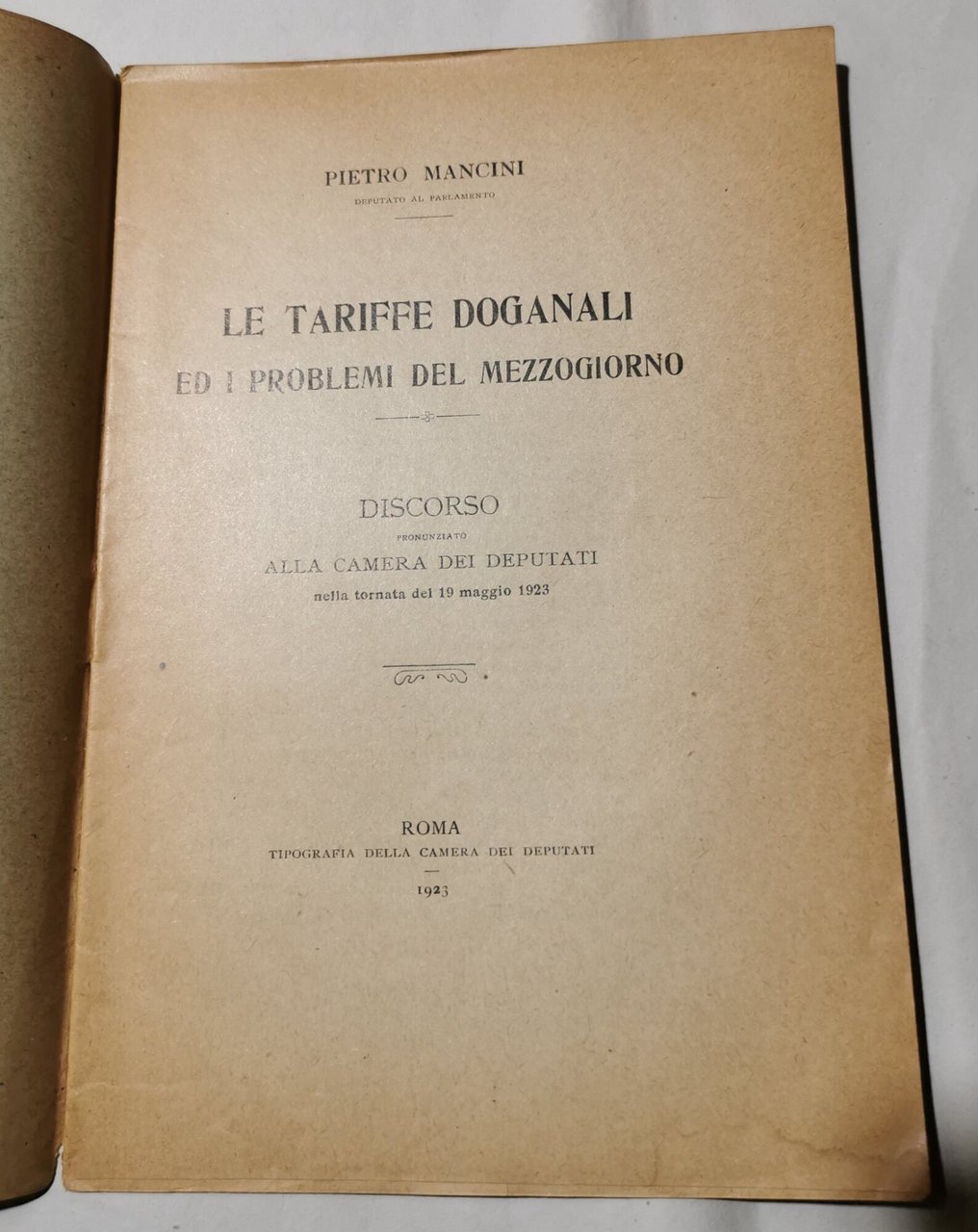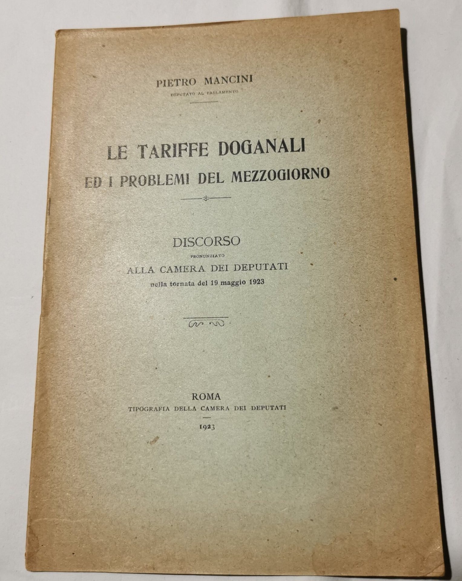 In 8', br.ed. in puntasa di spillo, pp. 28; discorso pronunziato alla Camera dei Deputati nella tornata del 19 maggio 1923; bruniture ai margini della cop., interno buono, segni del tempo. ***Due to bureaucratic reasons, books dated over 70 years old cannot be immediately exported, please contact us before placing the order.***