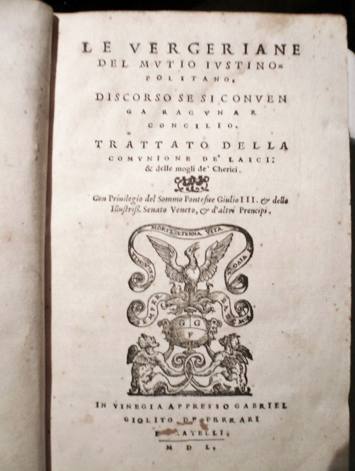 Le Vergeriane del Mutio Iustinopolitano. Discorso se si conuenga ragunar concilio. Trattato della comunione de' laici: & delle mogli de' cherici. .
