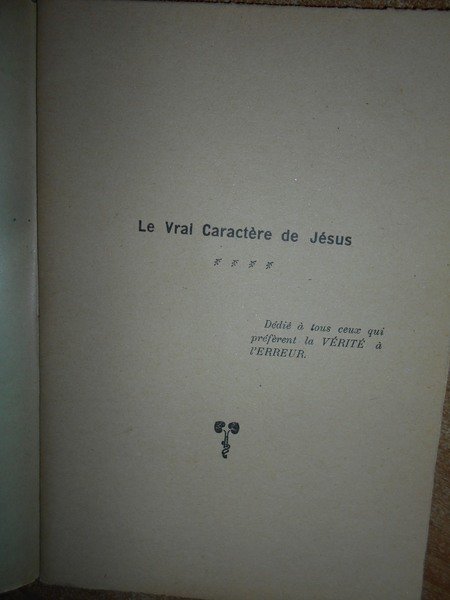 P. Montclair. Le vrai caractère de Jésus. (Seine et Oise), Editions de " L' Idée Libre" Conflans-Honorine, 1924. In-16°, br., punto metallico, 32 pp. Opuscolo in ottimo stato di conservazione. Neg. scat. 3 opusc. nonn.