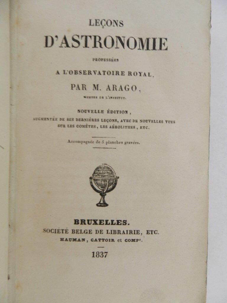 Leçons d'Astronomie professées a l'observatoire royal par M. Arago. Nouvelle édition, augmentée de ses dernières leçons, avec de nouvelles voues sur les comètes, les aerolithes, etc
