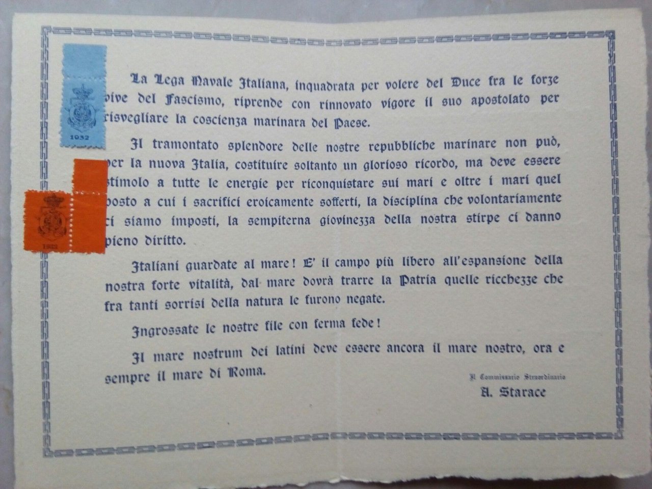 Lega Navale Italianapieghevole socinell'interno due bollini di appartenenza alla lega 1932/33in buono statogr. 20E20002/5