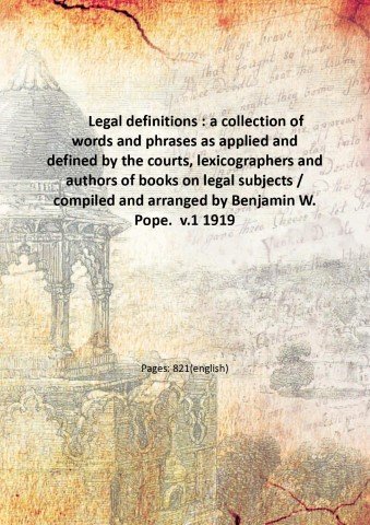 Legal definitions : a collection of words and phrases as applied and defined by the courts, lexicographers and authors of books on legal subjects / compiled and arranged by Benjamin W. Pope. Volume 1 1919