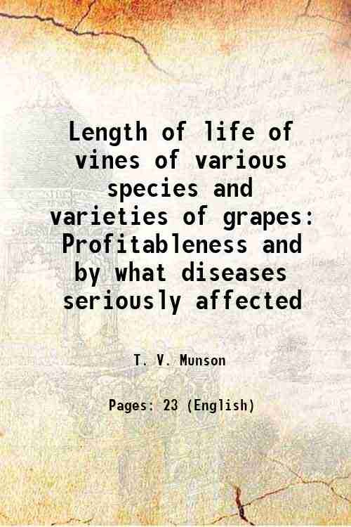 Length of life of vines of various species and varieties of grapes Profitableness and by what diseases seriously affected 1906