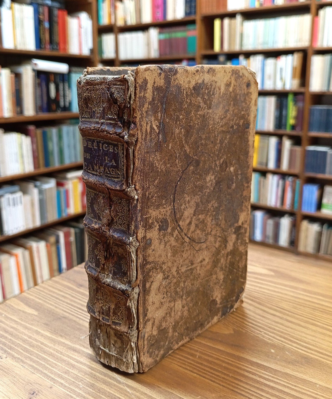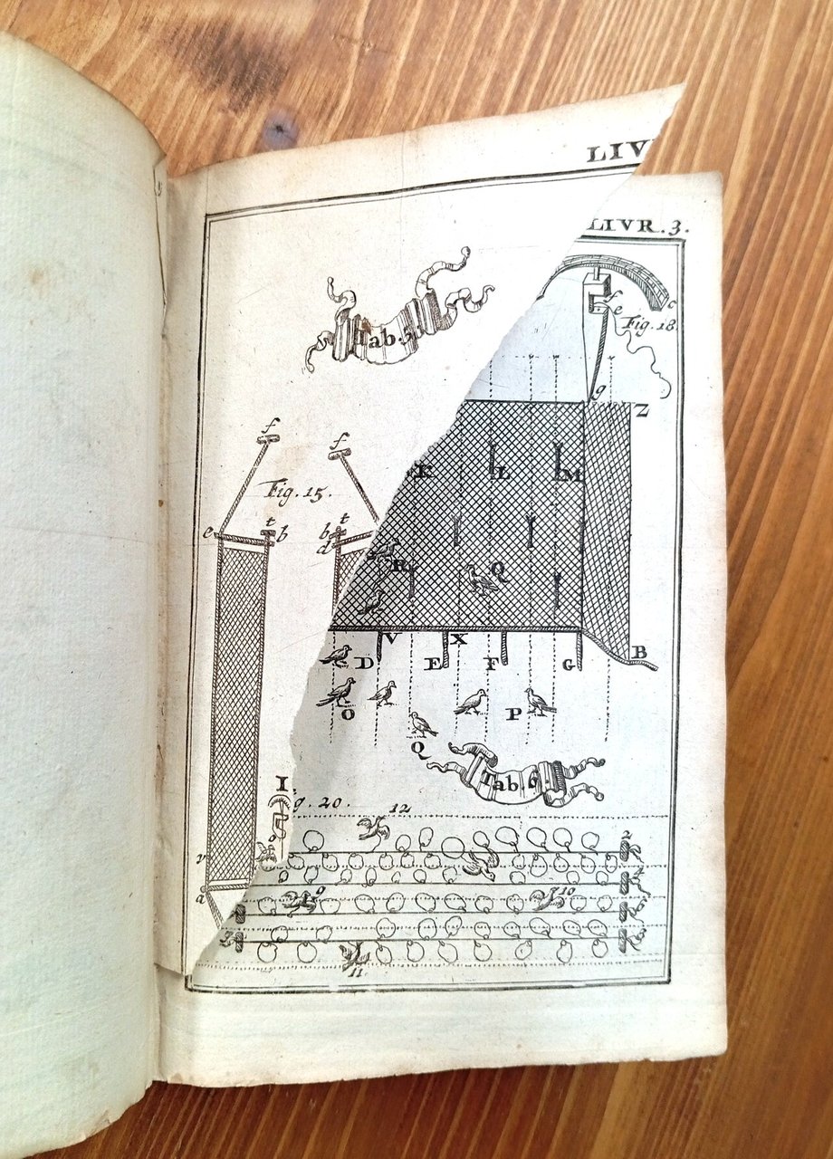 "Troisième édition mise en meilleur ordre, & augmentée d'un nouveau traité de la grande chasse & de la connoissance des chiens, &c., le tout accompagné de figures" - Volume rilegato in pelle marrone coeva o quasi, titolo in oro su tassello al dorso con decorazioni, 432 pagine con tavole illustrate in nero fuori testo, anche ripiegate; testatine e finalini incisi. L'opera, suddivisa in sei libri, documenta le tecniche di caccia, cattura e pesca praticate nella Francia rurale di fine Seicento. Vistosi segni del tempo alla legatura con lacune e restauri al dorso; una tavola strappata (vedi immagini); testo completo e ben leggibile. Esemplare in condizioni accettabili di un'edizione decisamente rara e in sé pregevole. [ FOR FOREIGN CUSTOMERS: due to its old age, the Italian law doesn't allow us to ship this book abroad; thank you for your understanding ]