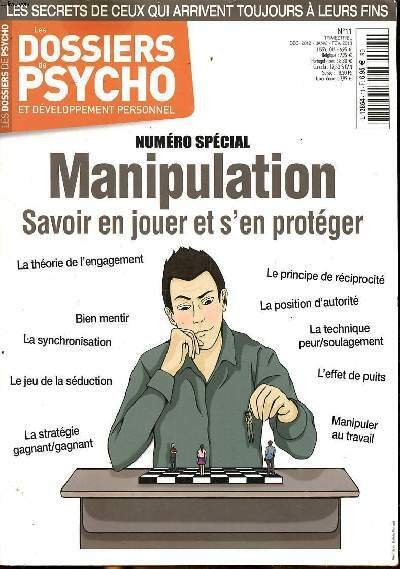 Les dossiers de psycho et développement personnel N°11 Décepmbre 2012 Janvier Février 2013 Numéro spécial Manipulation Savoir en jouer et s'en protéger Sommaire: La théorie de l'engagement, Bien mentir, Le jeu de la séduction; La technique peur, soulageme