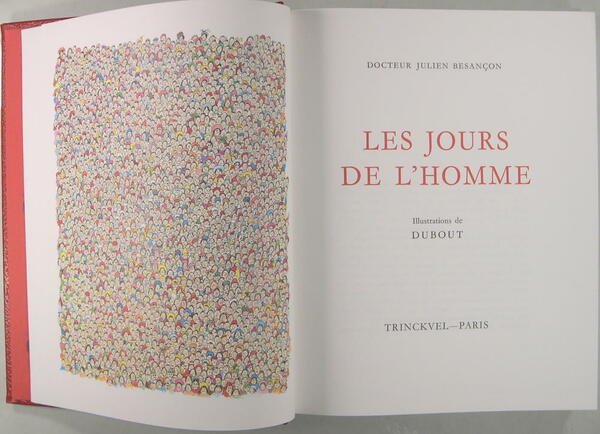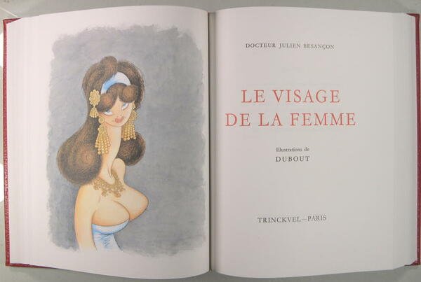 Trinckvel, Paris 1976, in/4 reliure éditeur en plein simili maroquin rouge avec son étui, gardes de papier rouge orné d'un décor à répétition de caducées dessinés par Dubout, tête dorée, 537 pages. 102 compositions de Dubout, dont 93 en couleurs (39 hors-texte dont 2 sur double page et 55 in-texte dont un sur double page) et 8 dessins en noir. Exemplaire numéro 229.
