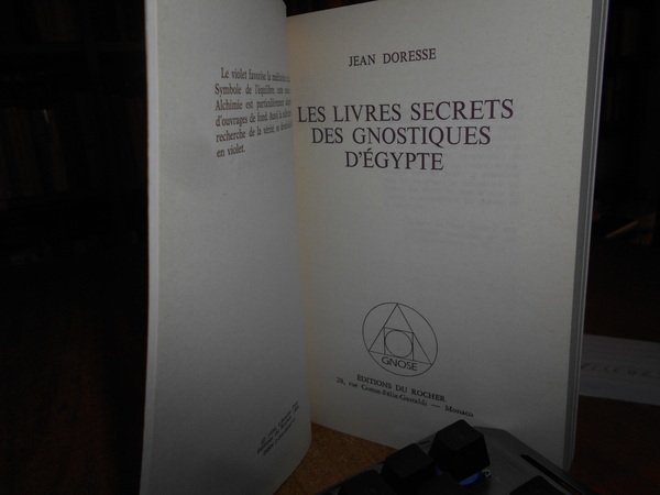 JEAN DORESSE. Monaco, éditions du Rocher, 1984. Les Livres Secrets des Gnostiques d' Egypte. In-8° piccolo, br. ill. a col. viii, 374, (8) pp. In ottimo stato di conservazione. Uff. stanzetta mob. piccolo a destra